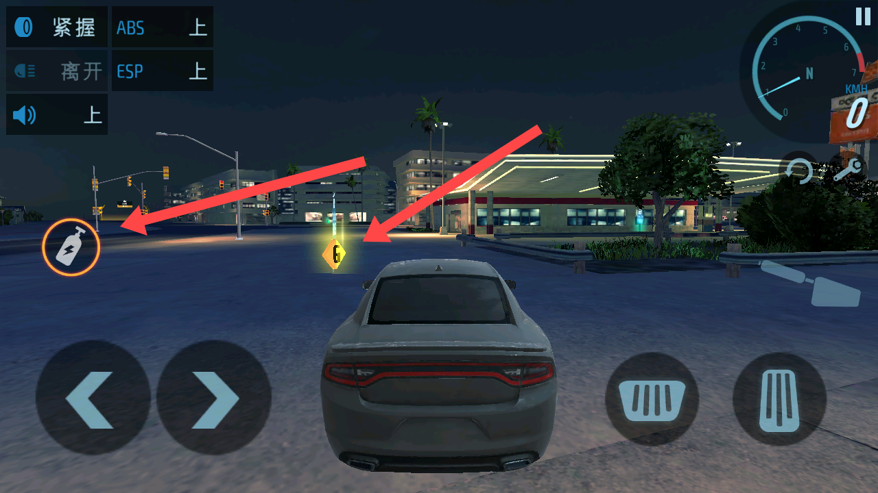 3、驾驶车辆通过前方G点标记即可获得虚拟货币,左侧液氮瓶可以使车辆加速。