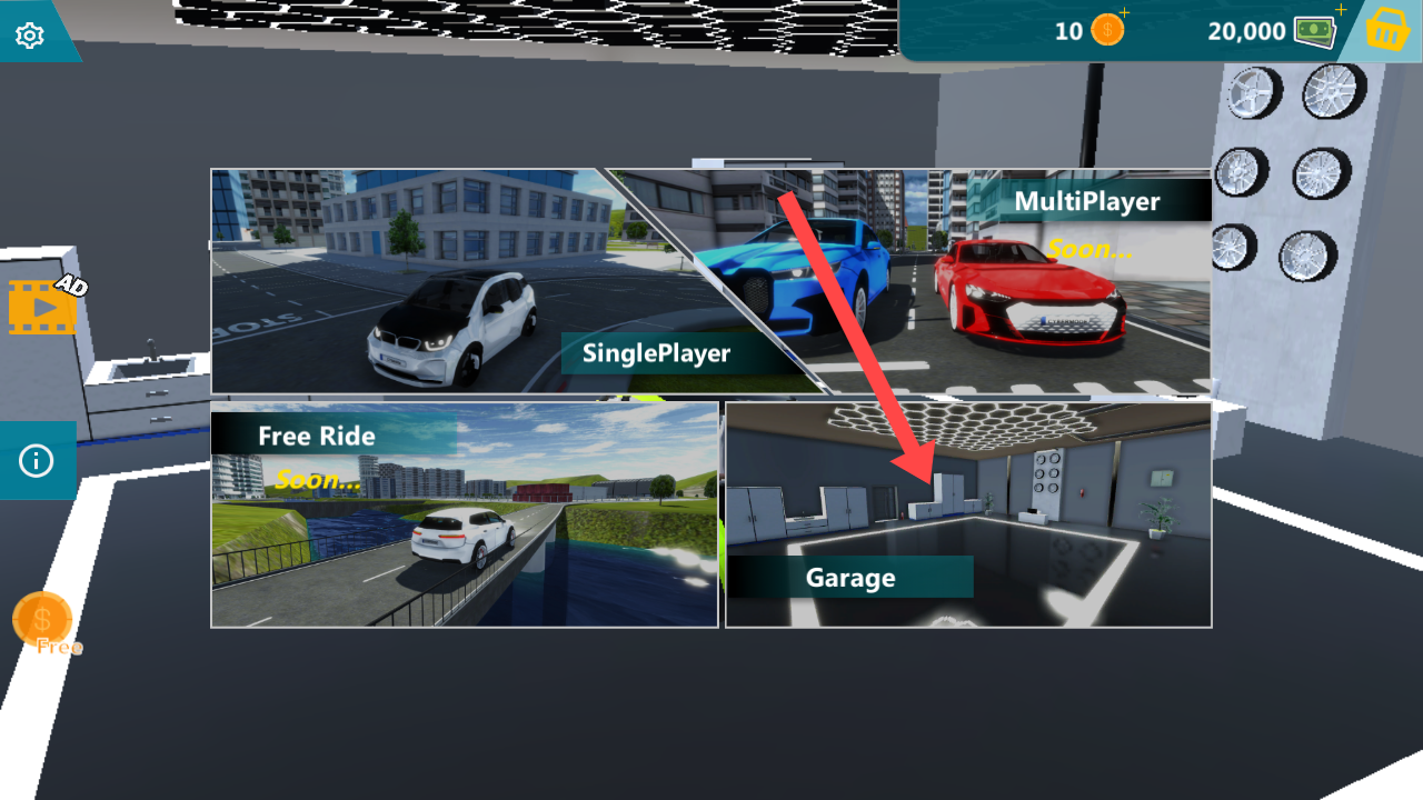 1、进入游戏在游戏主界面有多种模式,选择最后一个GARAGE进入车库。