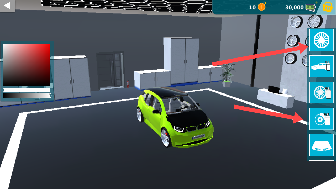 3、左右侧有对应的配件部位可以进行升级改造,包括换轮毂,涂装和换玻璃。