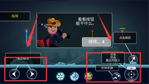 1、开局先熟悉操作,左侧控制移动,右侧按键负责攻击和跳跃。建议优先使用远程武器消耗敌人血量,近战留作补刀。