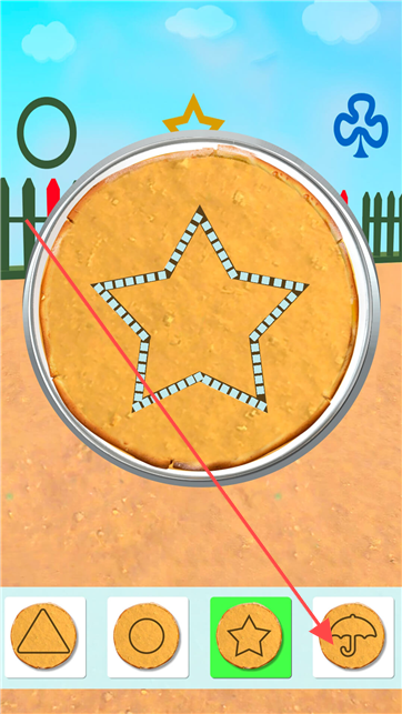 1、进入游戏界面,观察中间圆形区域,下方有多种图案图标(如心形、星星等),按箭头指示点击对应图标,在圆形区域内生成相应图案。