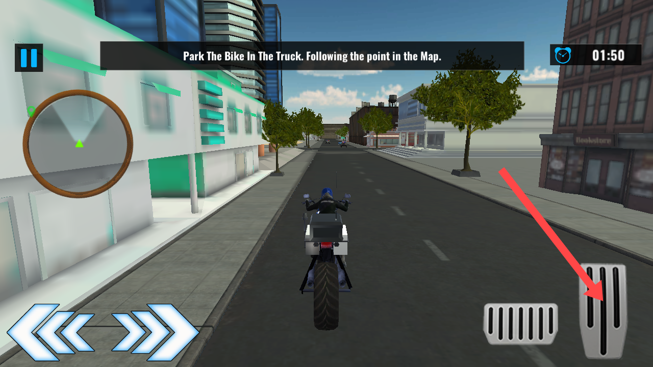 2、操控摩托车时,点击屏幕右下角的加速按钮,按地图指示前往目标地点,注意时间限制。