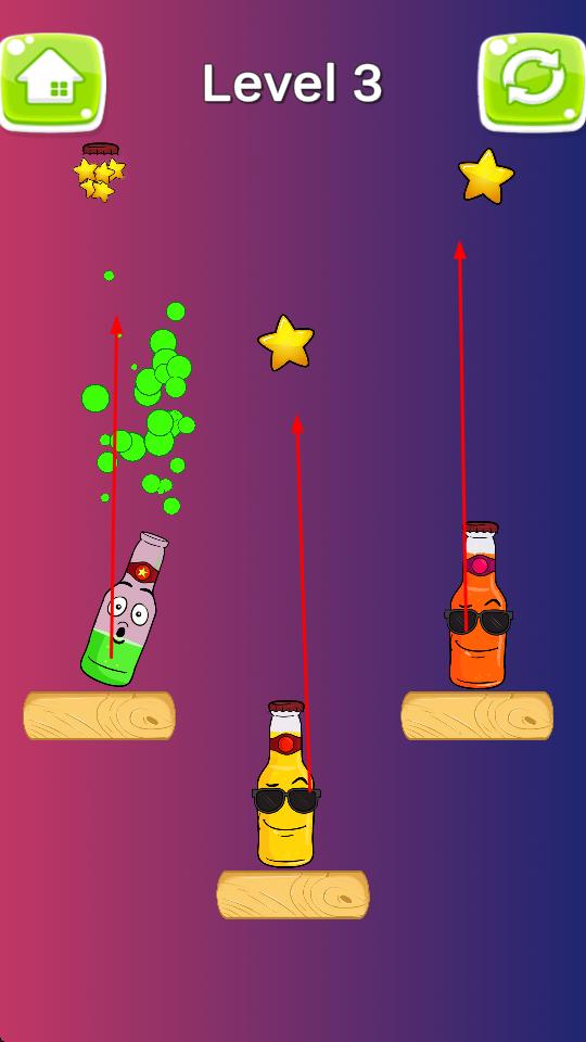 2、玩家操控带有表情的瓶子或罐子,通过发射液体或自身移动,击中并收集场景中的星星。