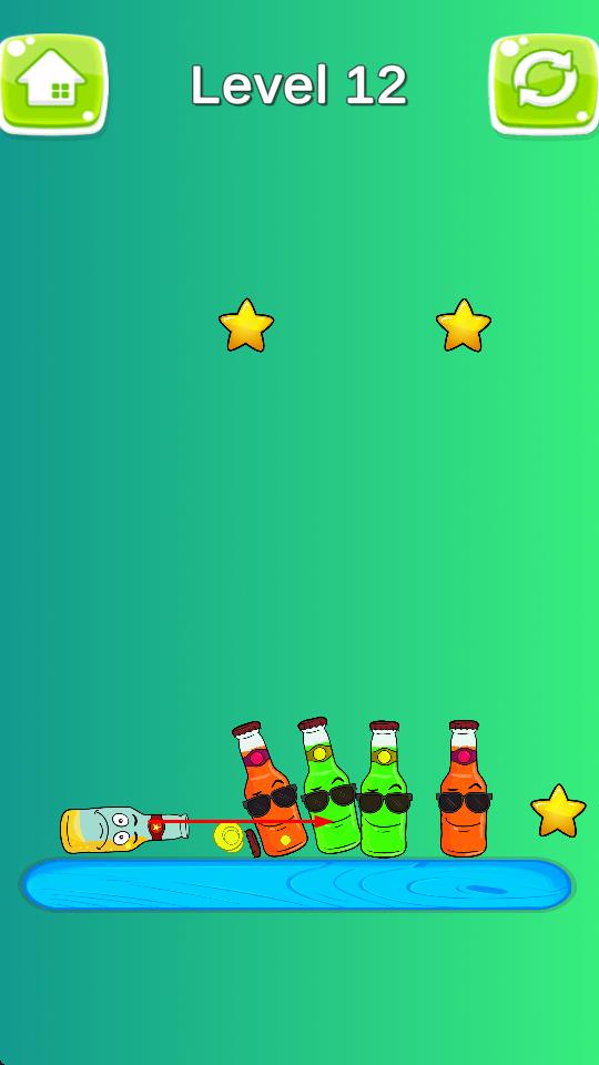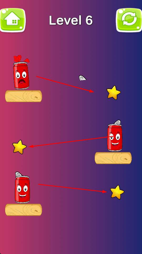 击倒苏打瓶是一款轻松解压的闯关佳作,采用简约的游戏画面,玩家只需将形状各异的瓶子和罐头击中,即可获得星星奖励,游戏中瓶子拥有q萌的拟人化表情,极易激起玩家的萌点,是休闲时刻打发时间的绝佳选择。