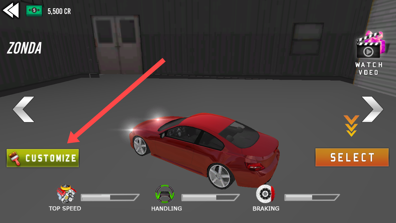 1、点play进入赛前准备,在该界面可以选择车型和改装,然后点右边的SELECT开始。
