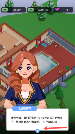 2、在洗浴中心场景中按照【箭头】指示,点击对应区域,可能是进行场地查看、任务触发等操作。