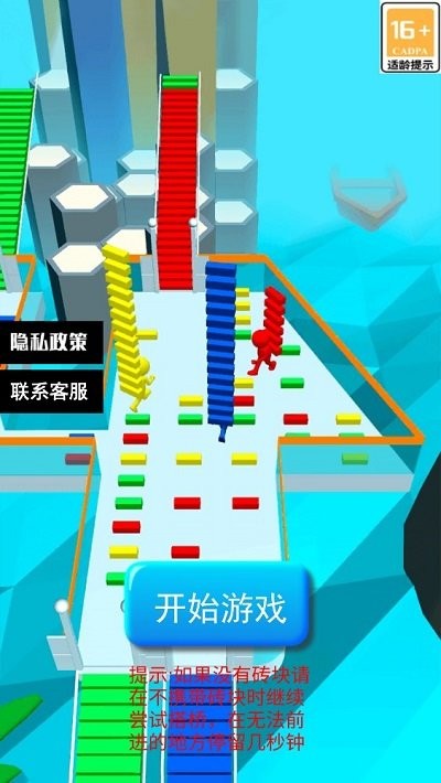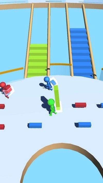 2、场景中有其他玩家操控的小人,大家竞争收集方块并率先爬上楼梯,冲向终点。