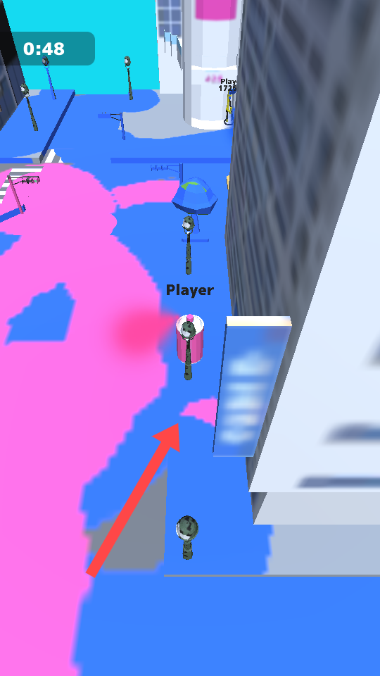 1、进入游戏后选择心仪颜色,操控喷雾瓶在城市地图喷涂,熟悉按压喷射操作,开启染色面积争夺的竞技之旅。
