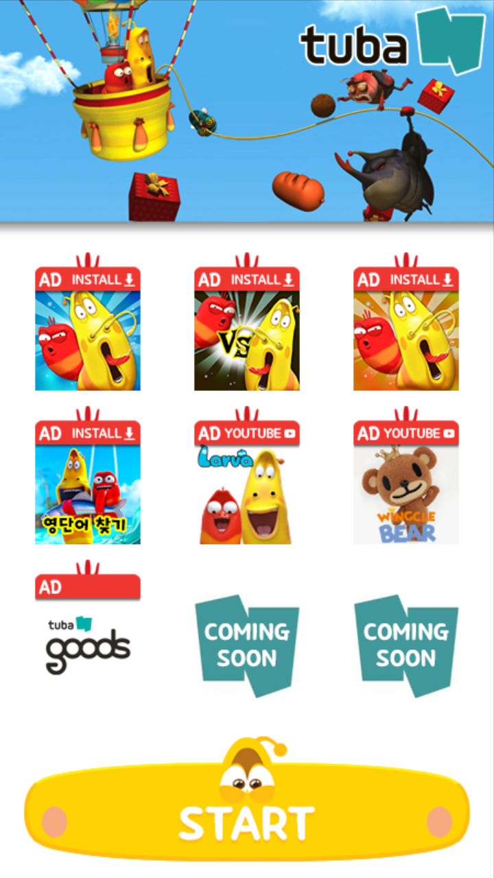 1、在游戏启动界面,点击【START】进入游戏,无视广告内容,准备开启爆笑虫子画线游戏之旅。