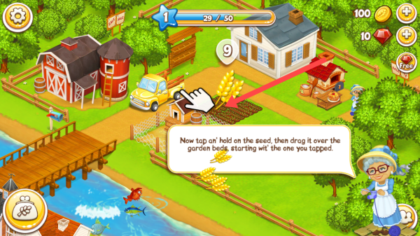 2、进行种植操作的时候,需要按住种子图标并拖到花园床,从点击的花园床开始,完成播种步骤。