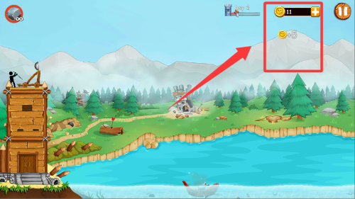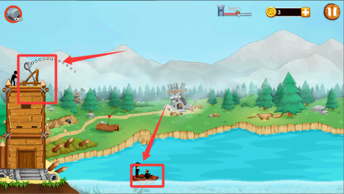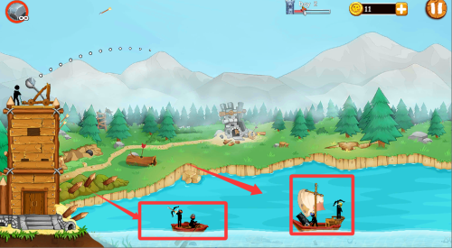 1、游戏开始后,先熟悉操作界面,点击屏幕发射炮弹或弓箭,瞄准维京人的船只,尽量击中船上的敌人。