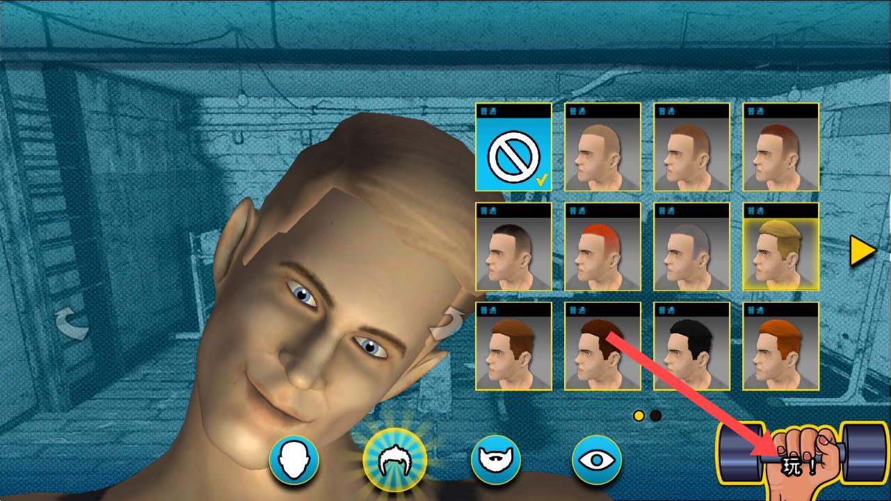 1、进入健身房模拟器,玩家以硬汉形象登场,面对多样健身器材,准备开启塑造完美身材的健身之路。
