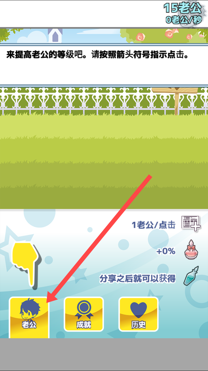 2、按照箭头的指示,你需要点击【老公】的按钮,然后开始提高自己老公等级的操作。