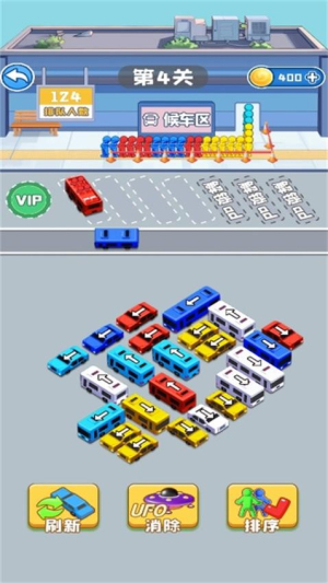 4、动态难度系统,随着关卡推进,车辆排列组合会越来越复杂。