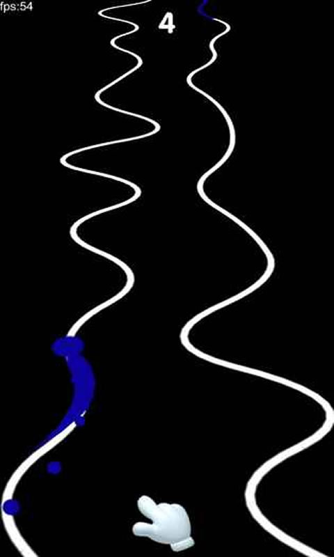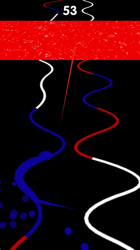 1、触屏切换轨道:点击屏幕任意位置切换小球所在轨道,蓝色轨道安全红色轨道危险,需在小球即将接触异色曲线前快速点击,确保切换时机精准避免碰撞。
