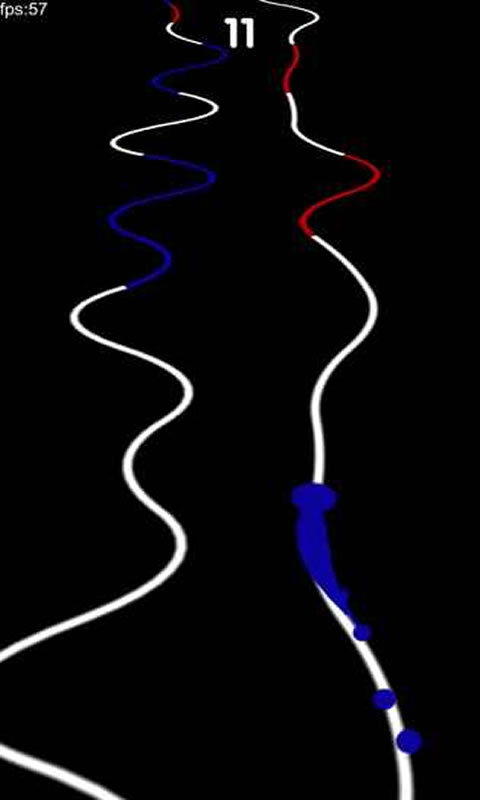 2、前方有白色,红色,蓝色的线,要点击屏幕不断地切换两条线,躲过不是小球颜色的线,白色是都可以经过的。