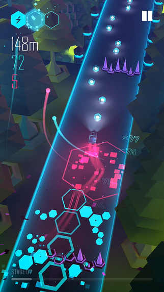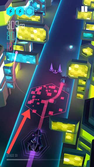 2、在飞驰的过程中,专注于音乐节奏,灵活左右移动躲避障碍物,跳跃跨越陷阱,同时收集节奏能量,为反击追击的敌人做好准备。
