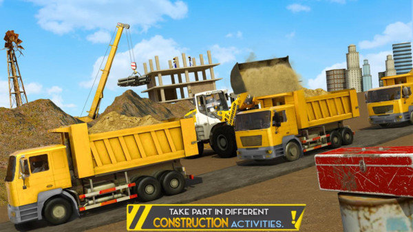 3、职业晋升:从市政工程到矿山开采,任务难度随等级提升,高级关卡要求同时操作多台设备配合。