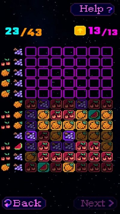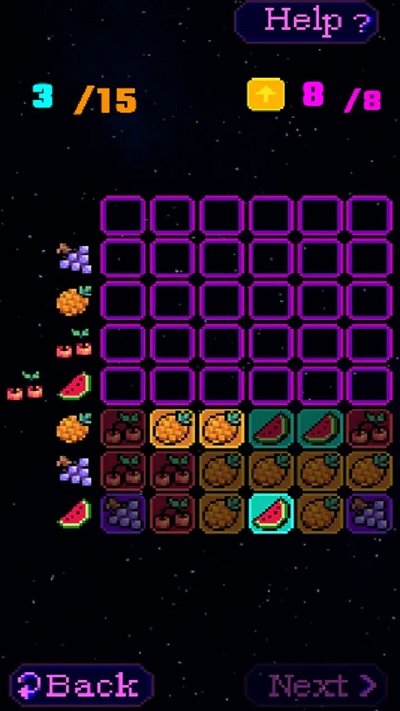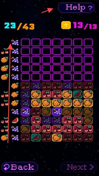 3、游戏设有“Help?”功能,玩家在遇到困难时可点击寻求帮助,还能通过“Back”返回和“Next”进入下一关。