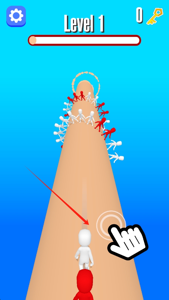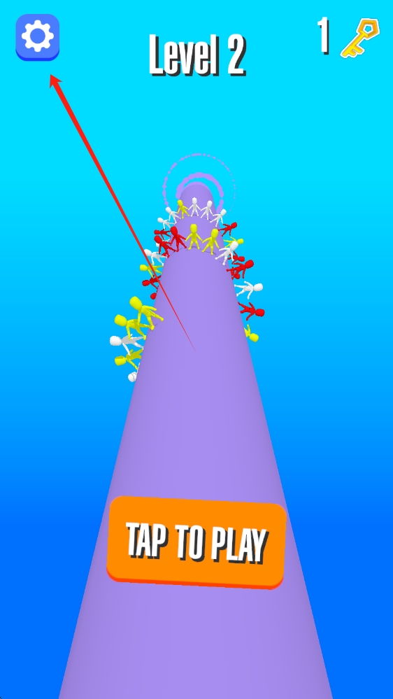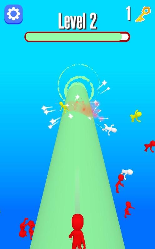 1、点击屏幕开始游戏,合理控制圆柱旋转速度,当两个相同颜色火柴人对齐时,迅速点击射击,精准命中目标。
