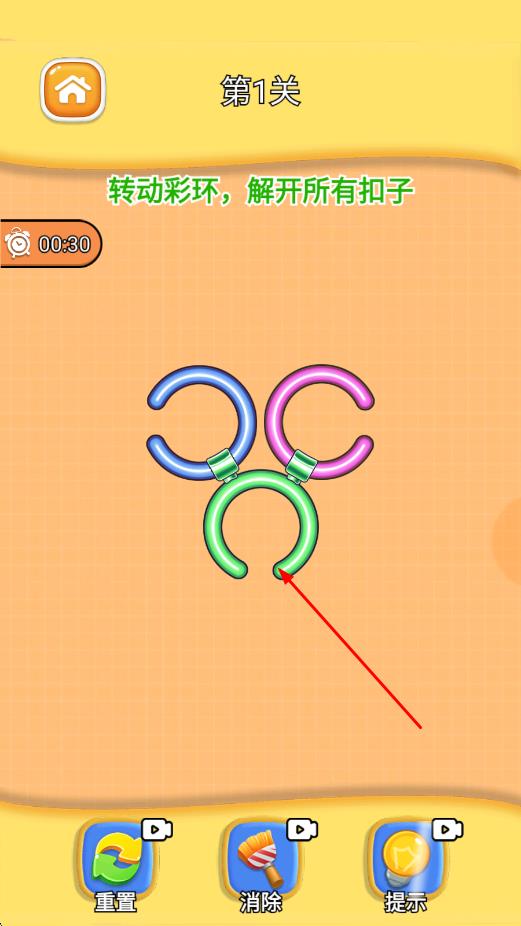 3、历经层层充满挑战的关卡,玩家凭借敏锐的观察力和灵活的操作成功解开所有环扣,收获烧脑解谜的胜利喜悦。
