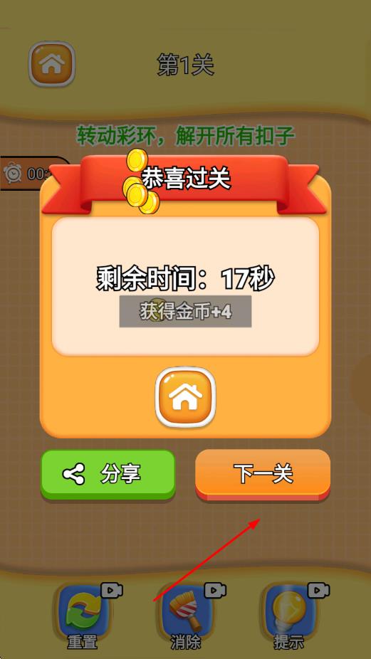 3、总结经验破难关:若解环失败,总结经验教训,尝试新的操作方法,成功解开环扣完成关卡挑战。