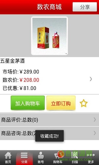 3.查看商品详情:产品页面包括购前分享,立即订购,加入购物车,收藏,产品基本信息,商品评价以及商品咨询等功能;