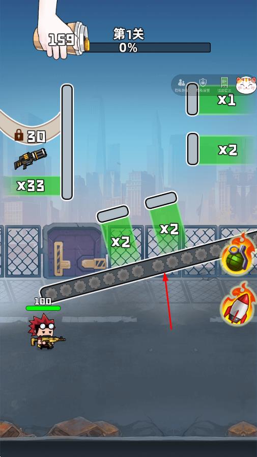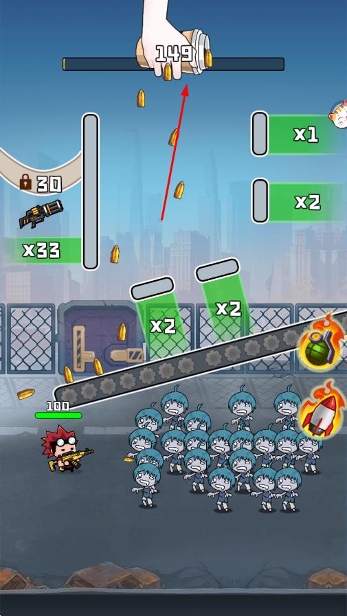 1、灵活接弹操作:控制角色灵活移动,精准接住从不同方向掉落的子弹,积累战斗弹药,为消灭僵尸做准备。