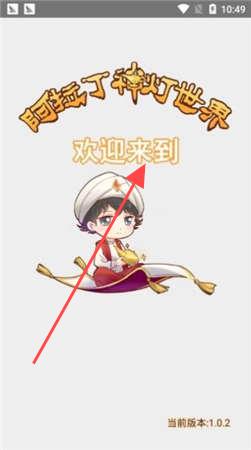 1、进入游戏看到“欢迎来到阿拉丁神灯世界”界面,这是游戏初始展示,让玩家知晓进入游戏。