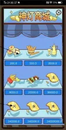 3、进入“神灯商城”,查看各类商品如不同价格的物品,按需选择,丰富游戏体验。
