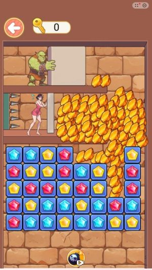 2、收集金元宝石,通过连锁消除触发坠落效果,获取额外奖励分数。