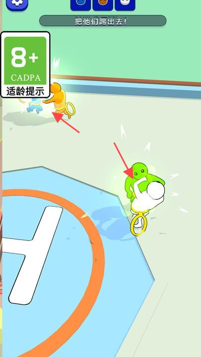 2、游戏给出明确任务指令,如把他们踢出去,玩家需按要求将对手小人踢出指定范围来完成任务。