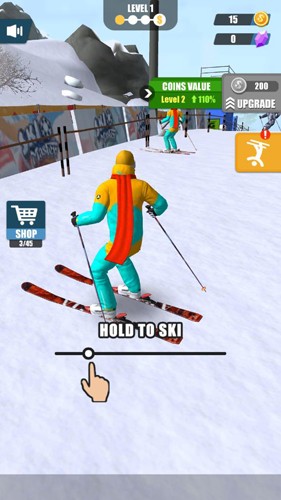 2、多模式赛道展示:不同年龄段对应多种游戏模式,玩家在不同赛道上指尖滑动控制角色,展示高超滑雪技术,享受多样化滑雪乐趣。