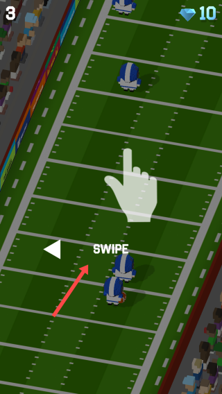 2、在游戏进行中依据【箭头】所指和提示“SWIPE”,通过滑动屏幕操控角色移动。