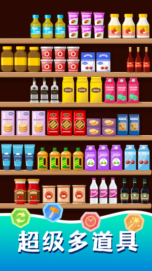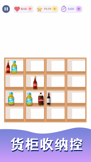 2、动态货架设计,随着关卡推进,货柜形状与物品摆放规则逐步复杂化。