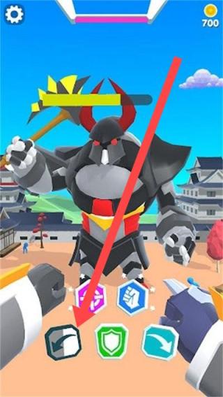 3、面对红色机器人,依照箭头提示精准点击技能按钮,通过实战掌握战斗技巧,确保顺利推进游戏进程。