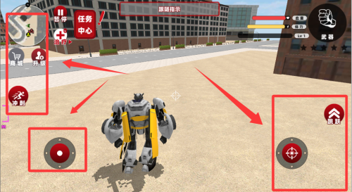 1、 新手建议熟悉基础操作和机甲特性,左侧摇杆控制移动,右侧按键发动攻击。
