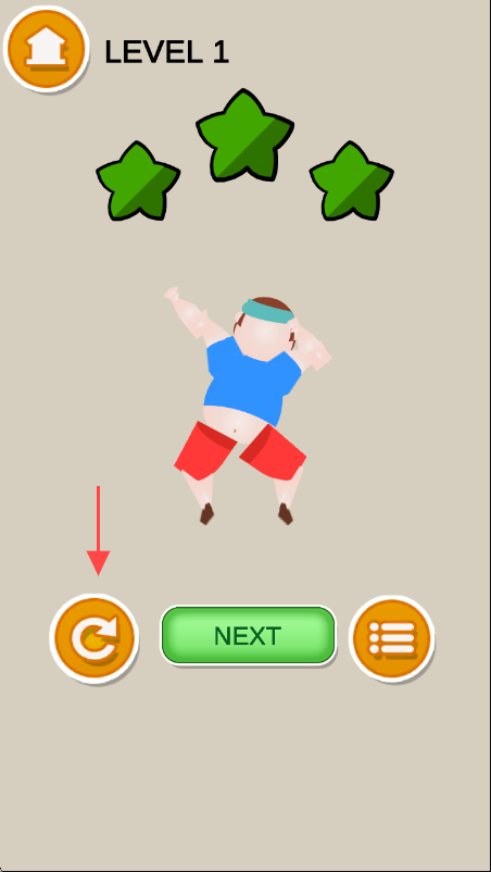 3、在【LEVEL 1】界面,若需重新挑战,点击左下角箭头所指的循环箭头按钮。