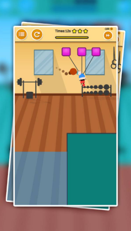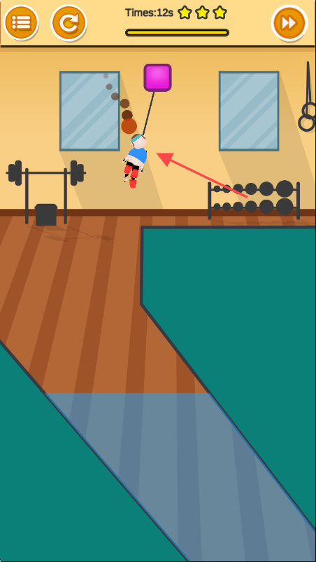 2、游戏里,按箭头指示操控角色,完成如利用悬挂装置移动等操作,注意时间和星级目标。