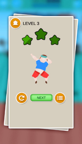 2、操作器材完成任务:在关卡中操控角色使用不同健身器材,通过点击、滑动等操作完成指定动作,精准度影响减肥效果,考验手眼协调能力。