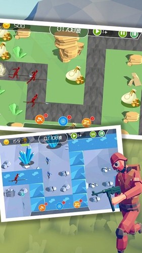 4、实时攻防策略博弈:参与精彩对决时,大量敌人分波次袭来,需抓紧时间升级防御塔、调配兵种位置,在紧张刺激的防守过程中展现临场指挥能力。