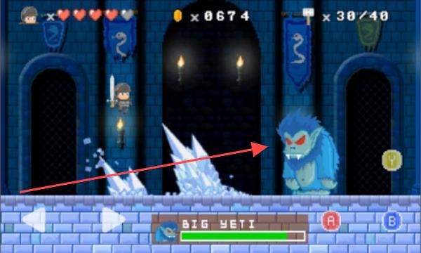 3、面对大型怪物如【BIG YETI】,把握攻击时机,使用技能或武器攻击,注意躲避其攻击,争取战胜怪物通过关卡。
