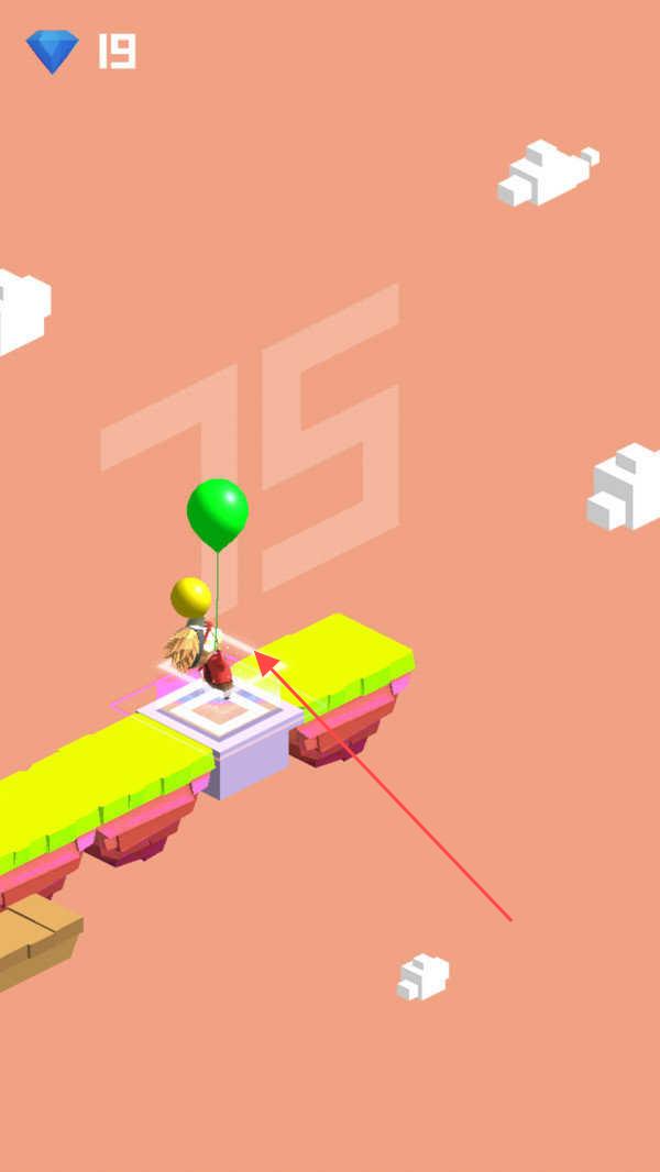 2、当角色站在平台上,借助【绿色气球】等元素,按箭头指示方向前进,注意画面中的数字,争取达成目标。