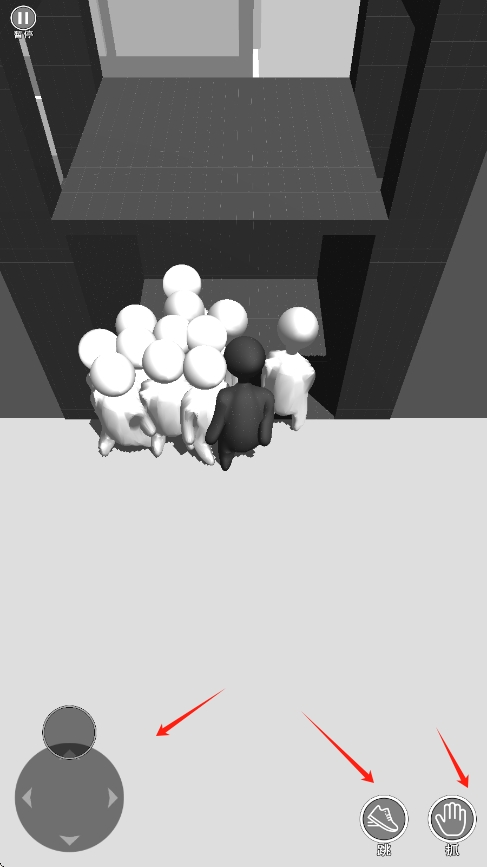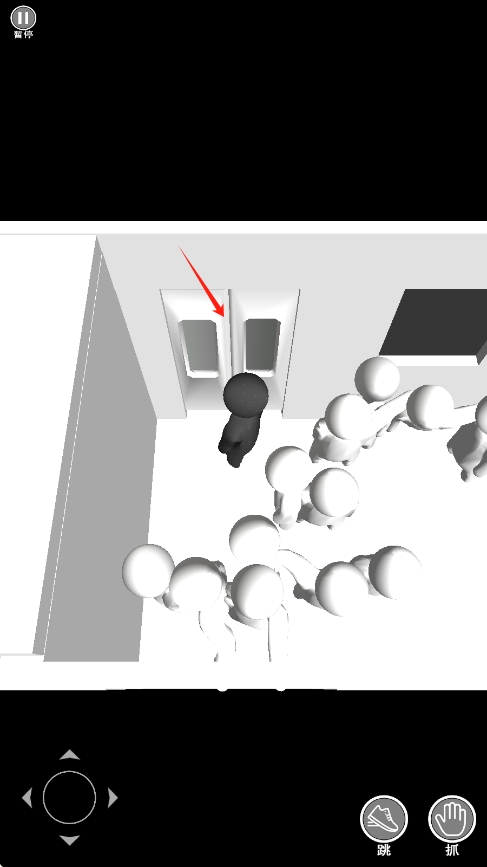 2、我们的人物是黑色的,利用摇杆和跳跃往电梯里面挤,即可通关。