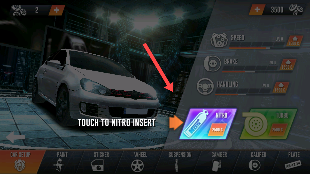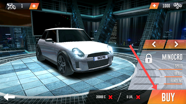 1、进入游戏可点击GARAGE购买车辆,好的座驾让你在竞速比赛中更具优势。