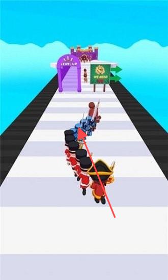 1、玩家操控角色带领队伍在道路上行进,通过操作使队伍沿着道路前进,朝着LEVEL UP等目标前进。