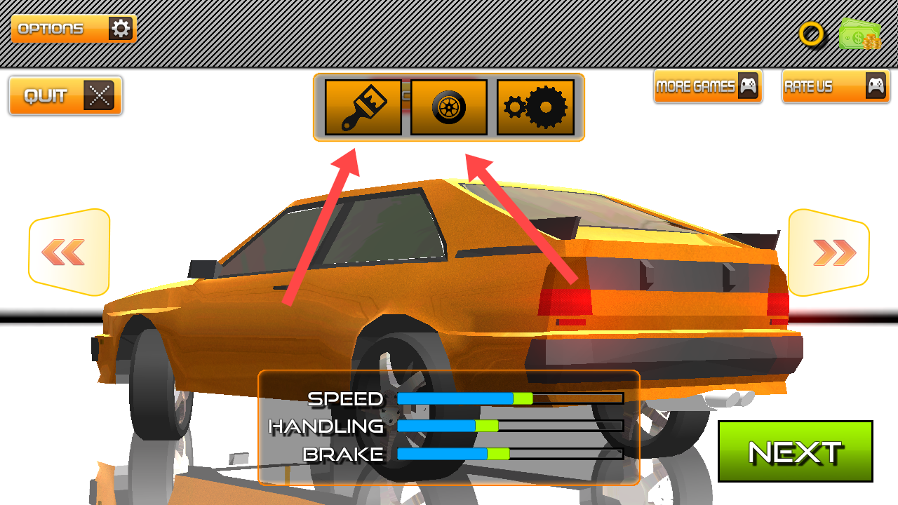 2、选择车辆后可进行喷涂和改装,然后点击右下角NEXT下一步进入驾驶模式。