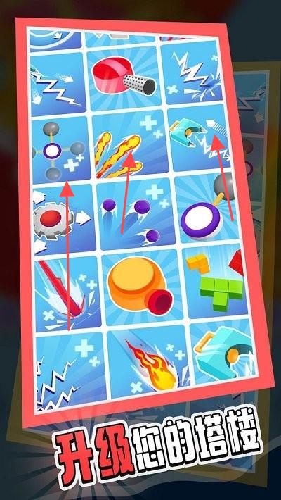 3、收益获取与升级:让破碎的道具残渣掉落到底部的搅碎机中可赚取收益,利用这些收益升级武器和道具,提升角色能力。