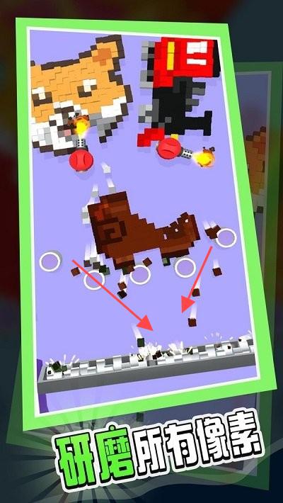 3、游戏中存在像素化的物体,玩家需通过操作消除道具触发将其研磨,推动游戏进程。