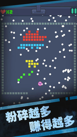 1、小球数量增益:玩家持续快速击碎像素方块时会获得更多小球,若连续击碎大量方块还能额外获取分数,这种机制让破坏过程更具成就感,激励不断追求更高效率的操作。